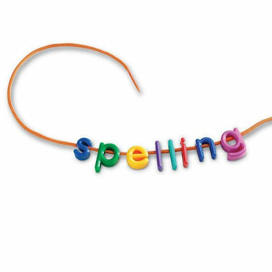 Este conjunto colorido de 260 letras minúsculas para enfiar, com 15 cordões coloridos em arco-íris, desenvolve habilidades motoras finas enquanto incentiva o reconhecimento de letras e a escrita inicial. Organize por letra ou cor, forme palavras simples ou escolha uma atividade do Guia de Atividades incluído.