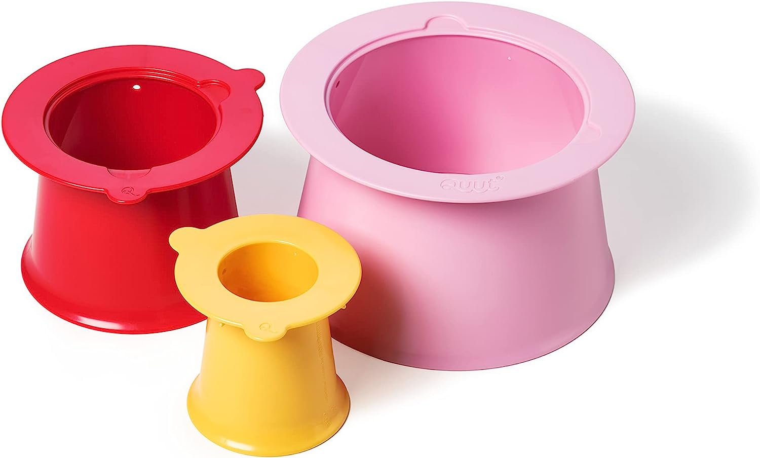 Inclui 3 tamanhos: pequeno, médio e grande... empilhe-os ou use-os individualmente. Design ergonômico para fácil uso, empilhamento e desmontagem.
