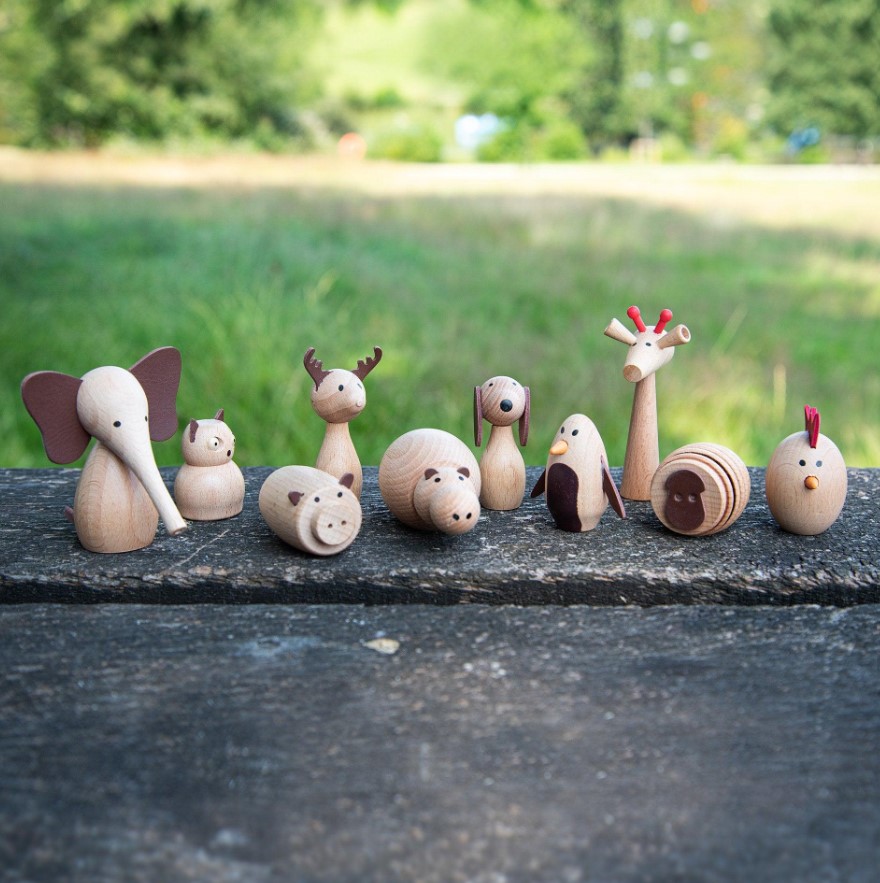 Um adorável conjunto de 10 animais de todo o mundo feitos de bonito e sólido madeira de faia.