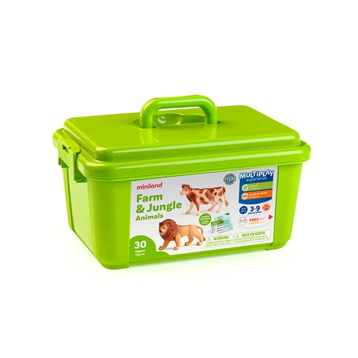 O conjunto de Animais da Quinta e da Selva da Miniland apresenta uma coleção encantadora de 30 figuras de animais, incluindo animais da quinta e animais selvagens da selva. Este conjunto permite que as crianças explorem e aprendam sobre diferentes espécies enquanto se divertem com jogos imaginativos.