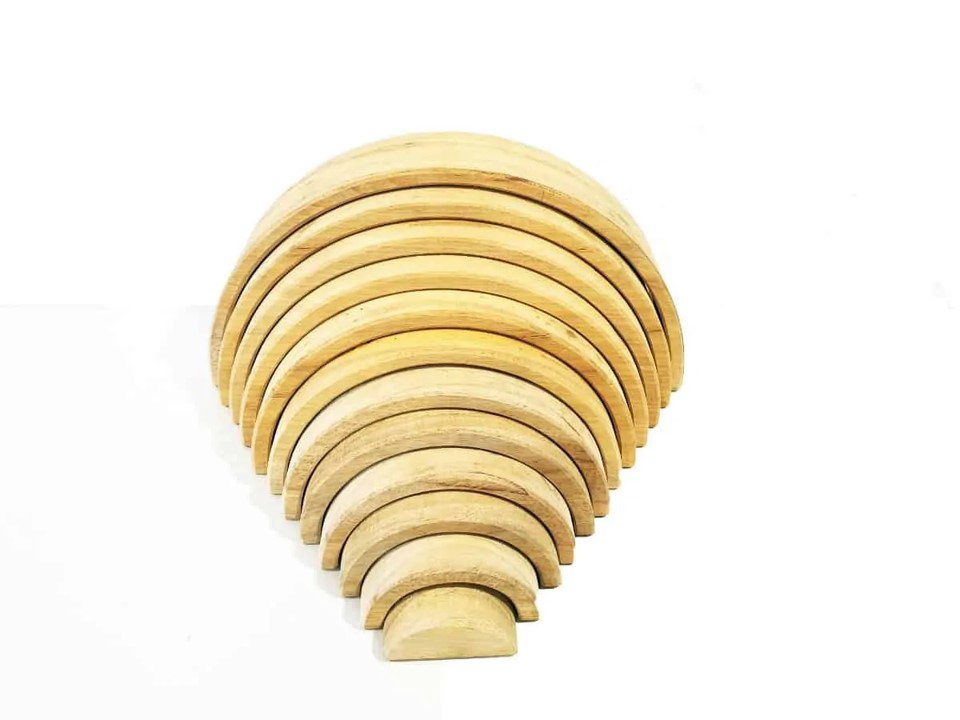 O arco-íris Waldorf de madeira natural é um brinquedo encantador que faz parte da pedagogia Waldorf. Feito com materiais naturais e sustentáveis, como a madeira, este arco-íris oferece uma experiência sensorial única para as crianças.