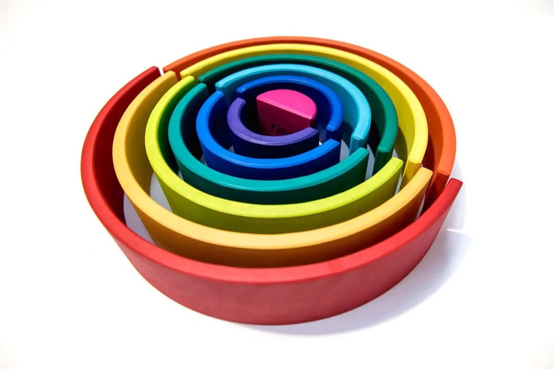 Considerado um clássico no contexto da pedagogia Waldorf, destaca-se como um fascinante conjunto de peças semicirculares, disponíveis em diferentes tamanhos e cores, que se combinam de forma harmoniosa e cativante, despertando a atenção tanto de crianças como de adultos.