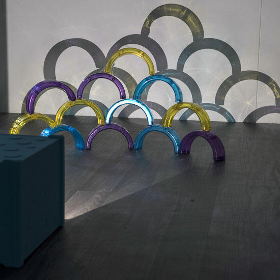 Use-os com mesas de luz ou observe seus efeitos com um projetor enquanto sombras e cores emergem nas paredes.