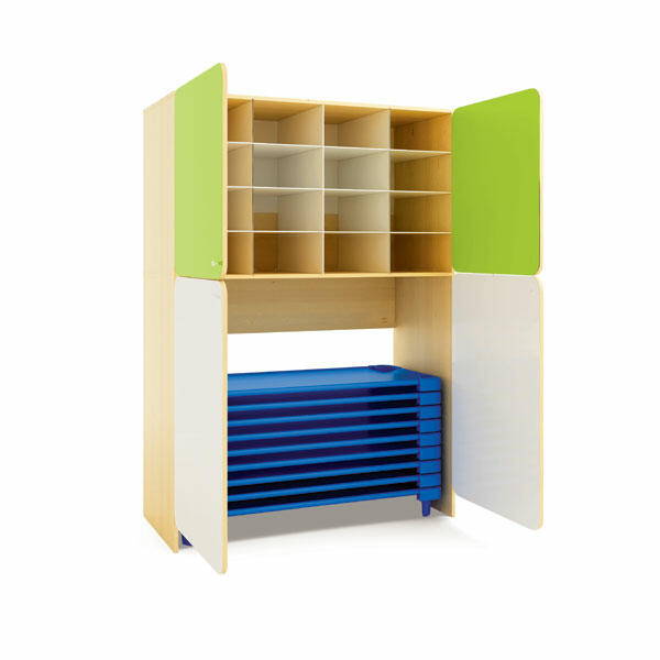 Este armário apresenta uma superfície lisa e elegante, adequada para qualquer ambiente. Além disso, oferece a possibilidade de adquirir acessórios adicionais, como berços dobráveis, para complementar as suas funcionalidades.