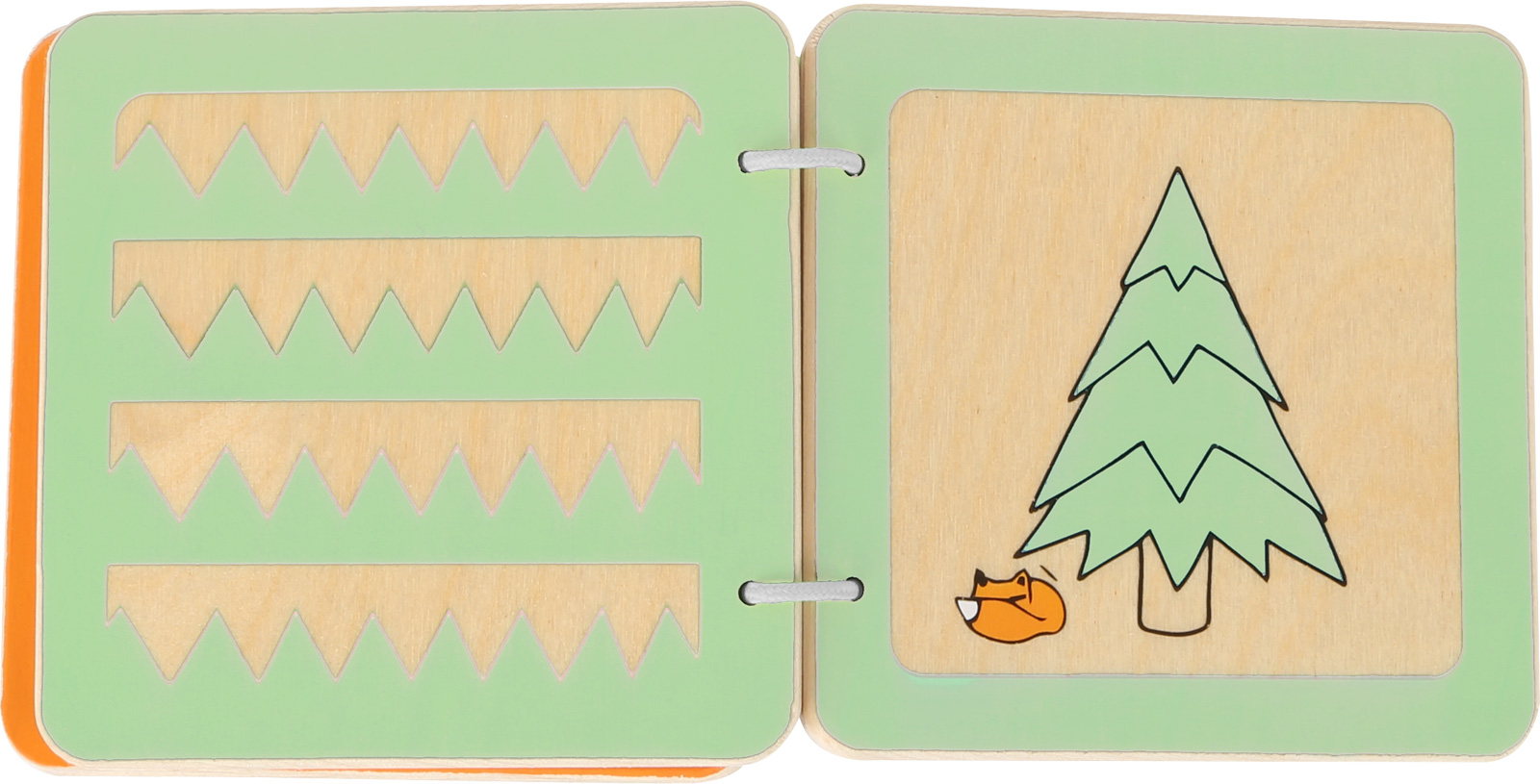 Fabricado em madeira robusta, este livro é fácil de limpar e cuidar. Em uma jornada de aventura com Lex, a pequena raposa, ele aproxima os bebês de seus primeiros padrões.
