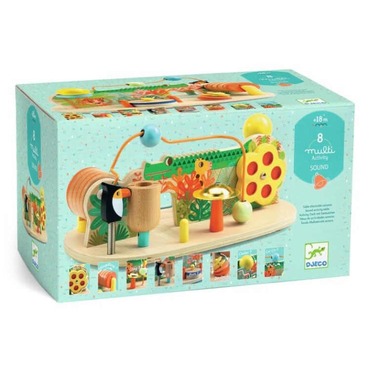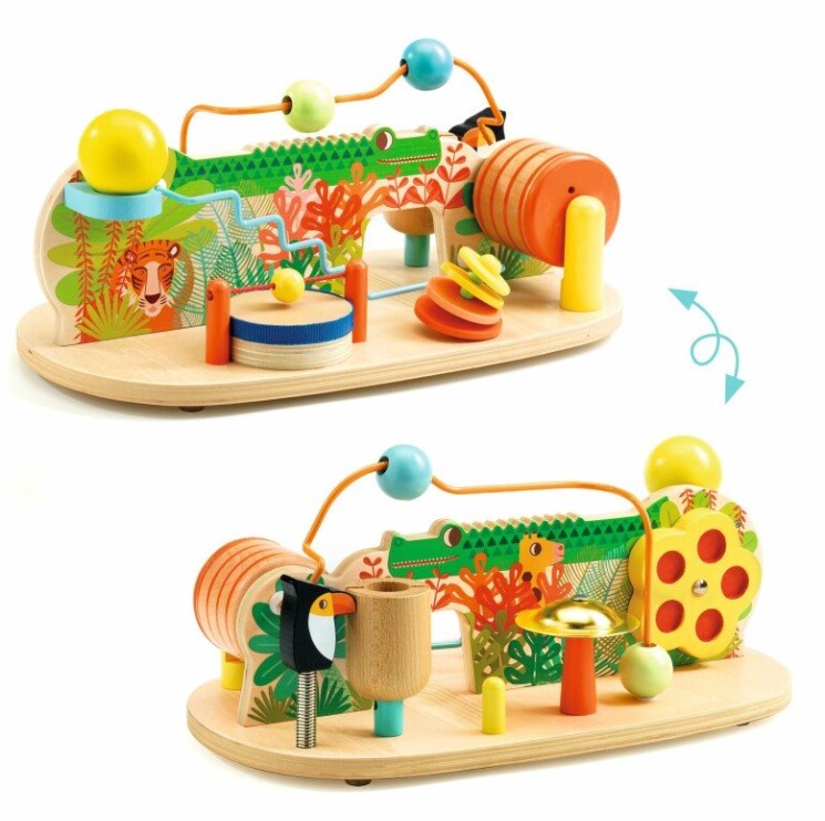 8 atividades sonoras inspiradas no mundo da selva. Estrutura com pés pequenos estáveis e antichoques. Estimula a coordenação motora, a perceção auditiva e a imaginação.