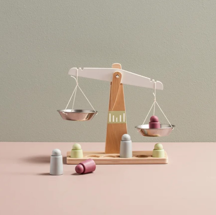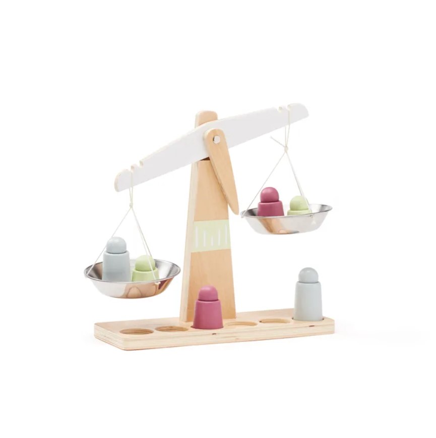 Balança em madeira ideal para pesar objetos em lojas de produtos, bancas de feira ou em casa. Perfeita para equilibrar pesos e contar o peso, proporcionando um ótimo treino em números, equilíbrio e habilidades motoras. Inclui 6 pesos diferentes. Esta balança faz parte da nossa popular série KID'S HUB, repleta de produtos perfeitos para jogos de faz-de-conta com pequenos chefes.