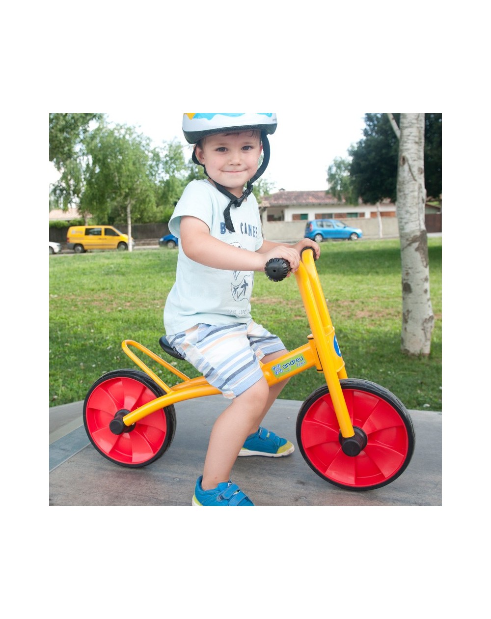 Uma popular bicicleta de equilíbrio resistente, sem pedais, que desafia o senso de equilíbrio das crianças e o uso da sua força e energia para manter a bicicleta de equilíbrio em movimento. Materiais brutos resistentes às condições climáticas.