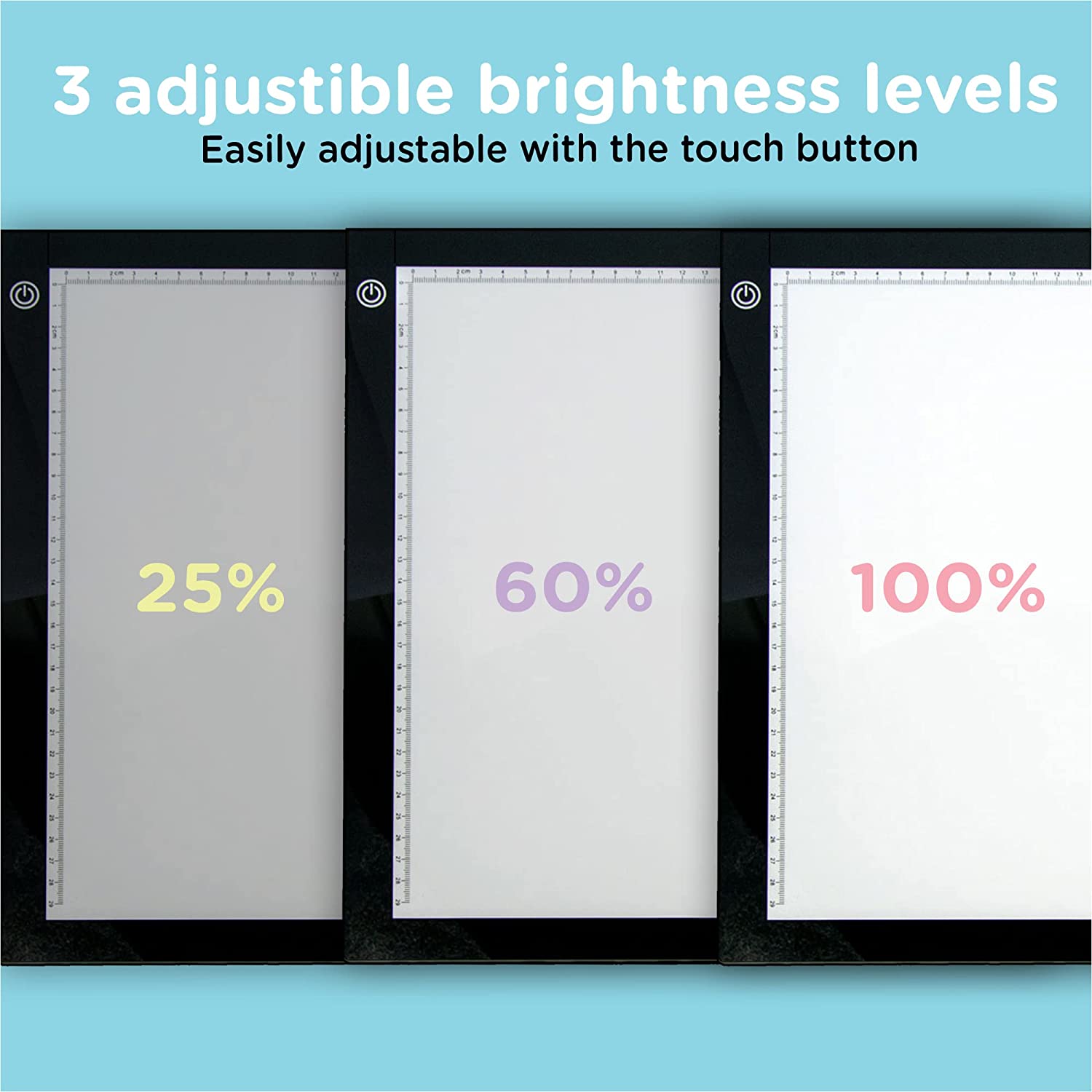 • A bandeja luminosa A3 possui um formato ultrafino e extra grande (470 x 345 mm) .