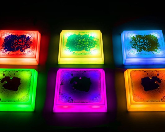 Cada base contém um líquido de cores vibrantes que se move ao ser pisada ou tocada. A luz LED incorporada realça os efeitos visuais e transforma cada interação num momento fascinante.