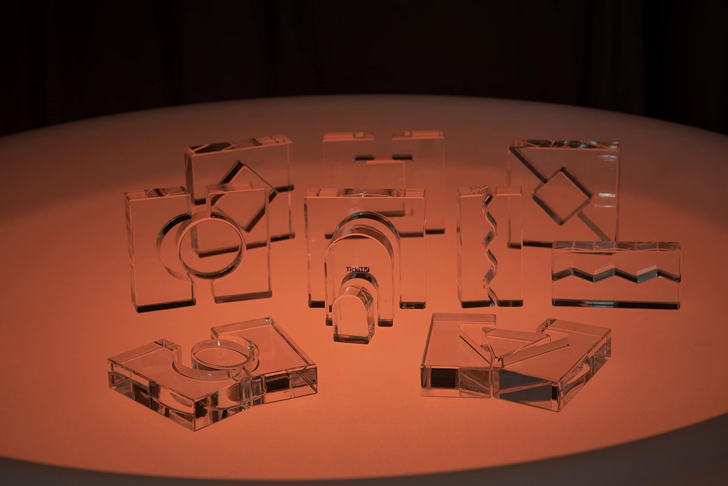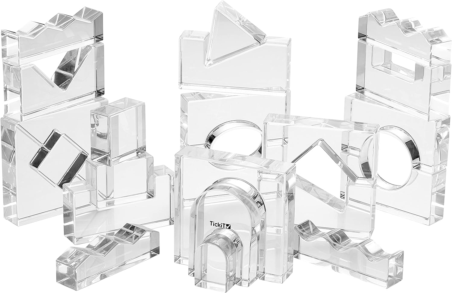 25 blocos de acrílico cristalino polido com superfícies suaves e táteis.