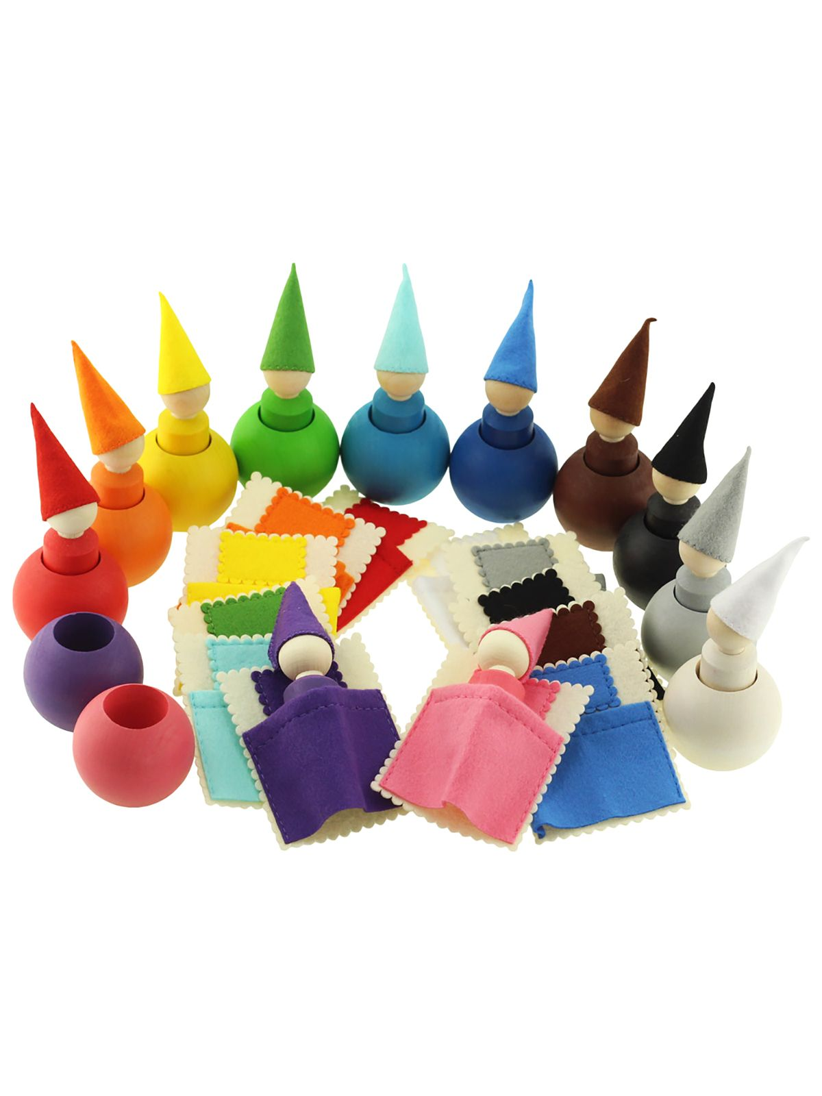 Composto por 12 adoráveis gnomos de madeira, 12 bolas de madeira, 12 chapéus de feltro e 12 camas de feltro, este jogo aberto é uma ferramenta educativa envolvente para o desenvolvimento das capacidades cognitivas e motoras das crianças.