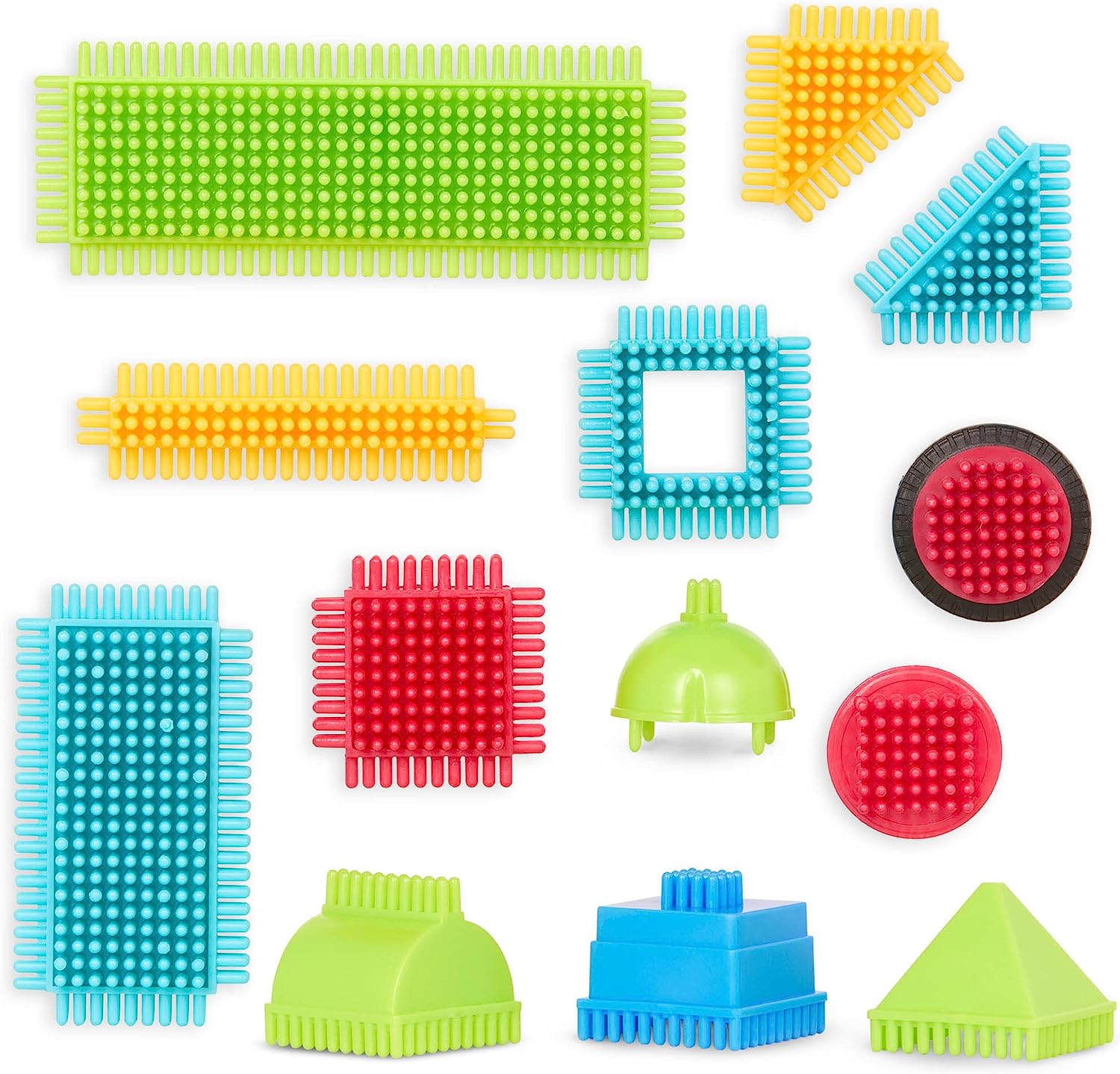 Brincadeira Sensorial A brincadeira sensorial com brinquedos criativos e táteis pode ajudar a apoiar o desenvolvimento da criança. Brinquedos sensoriais como os Bristle Blocks podem ajudar a desenvolver a comunicação, habilidades motoras e o pensamento independente.