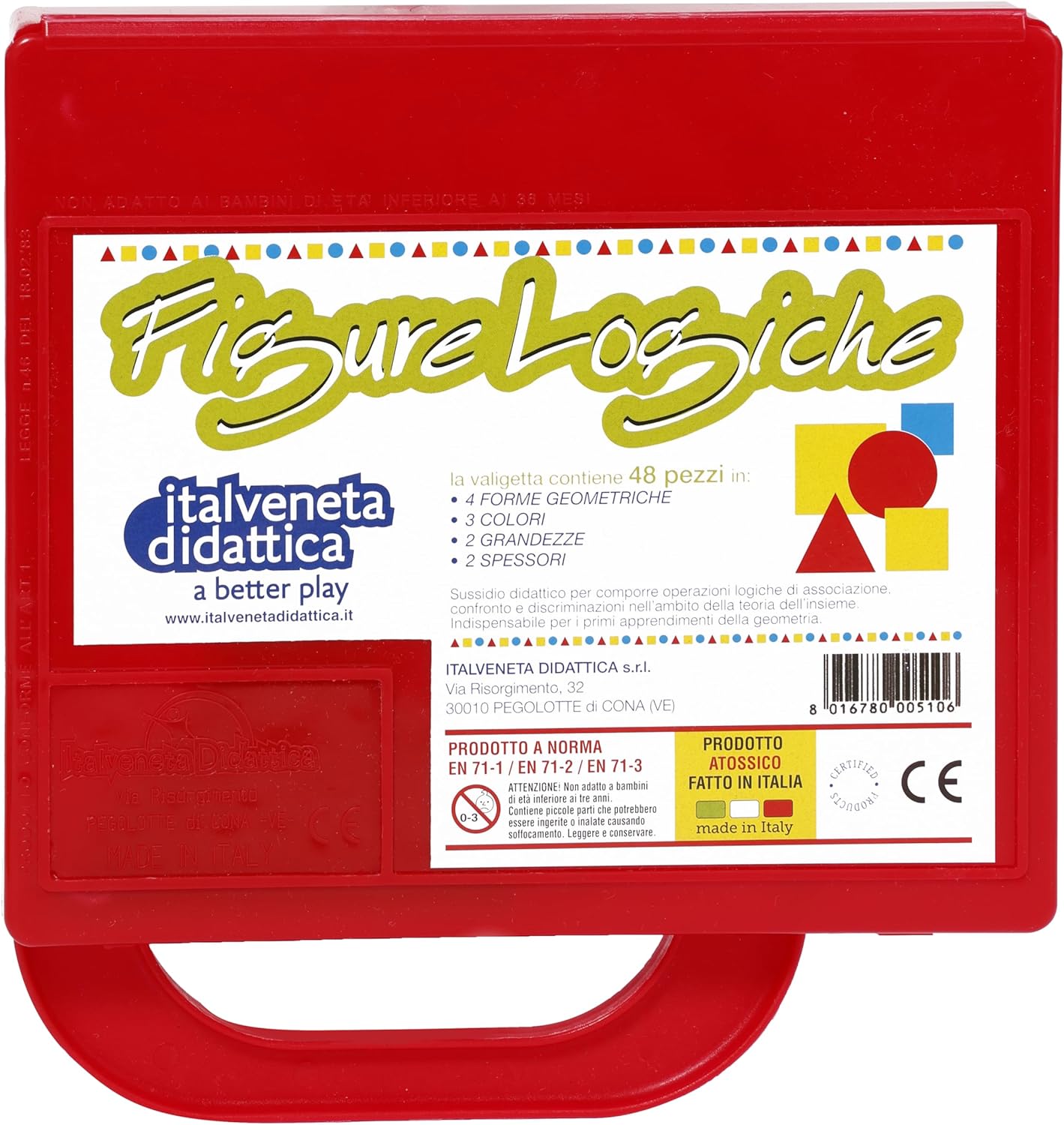 Home Matemática Caixa Blocos Lógicos Caixa Blocos Lógicos 16,70 € Desconto de %. Comprar Contactar Adicionar à wishlist Blocos lógicos em caixa em plástico, total 48 peças. Consulte o nosso Blog, para saber mais informações sobre este material em https://www.oursweetbox.pt/post/blocos-logicos-uma-ferramenta-versatil Características: 4 formas 3 cores: vermelho - amarelo - azul 2 espessuras 2 tamanhos Marca Italveneta Didattica Características Partilhar