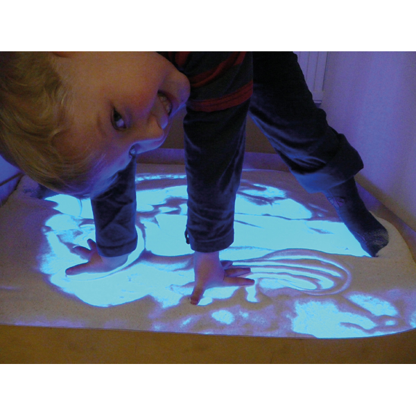 Pintar com massinhas, arroz na caixa de areia luminosa é uma experiência muito especial para as crianças.