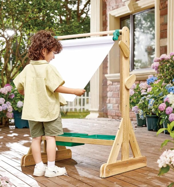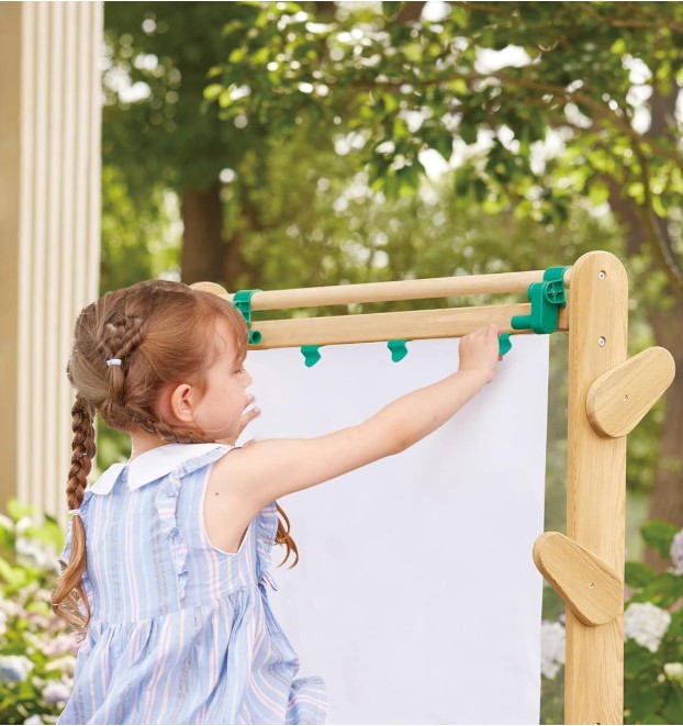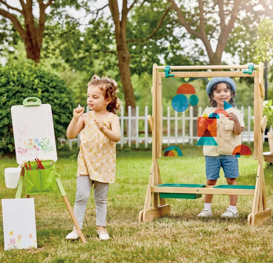 Perfeito para jardins, escolas ou espaços criativos, o Cavalete de Arte de Exterior Hape oferece às crianças a liberdade de explorar cores, formas e emoções num ambiente natural e inspirador — uma verdadeira experiência artística ao ar livre!