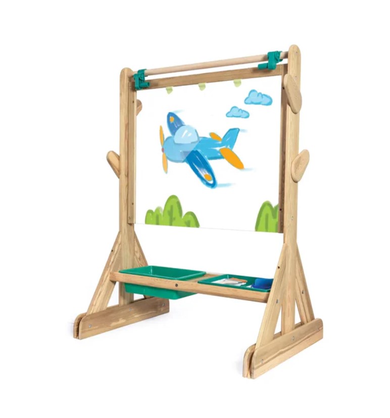 Mais do que um simples brinquedo, este cavalete é uma ferramenta de expressão e descoberta, que estimula a criatividade, a partilha e o desenvolvimento artístico em contacto com a natureza. A estrutura sólida em madeira sustentável garante estabilidade e durabilidade, resistindo ao uso frequente e às variações climáticas.