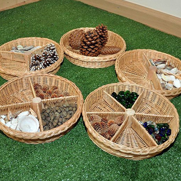 Os cestos são um excelente recurso para integrar nas áreas de numeracia, peças soltas ou mundos pequenos, estimulando a aprendizagem de conceitos matemáticos fundamentais de maneira interativa e envolvente.