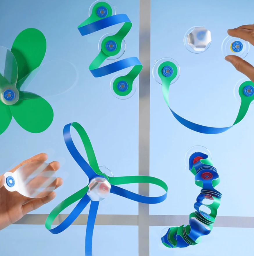 As crianças podem construir caras engraçadas, tubos suspensos ou estruturas elaboradas em janelas e azulejos!