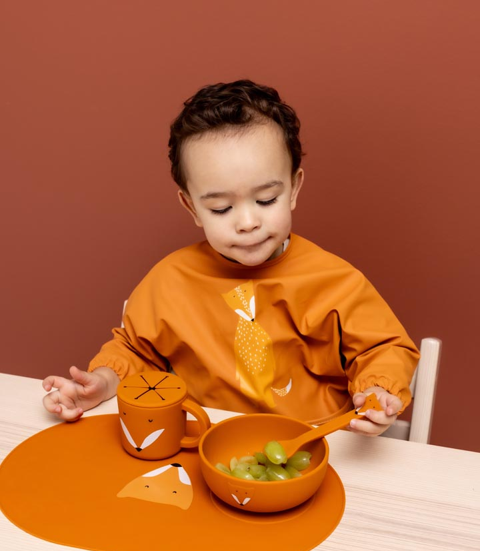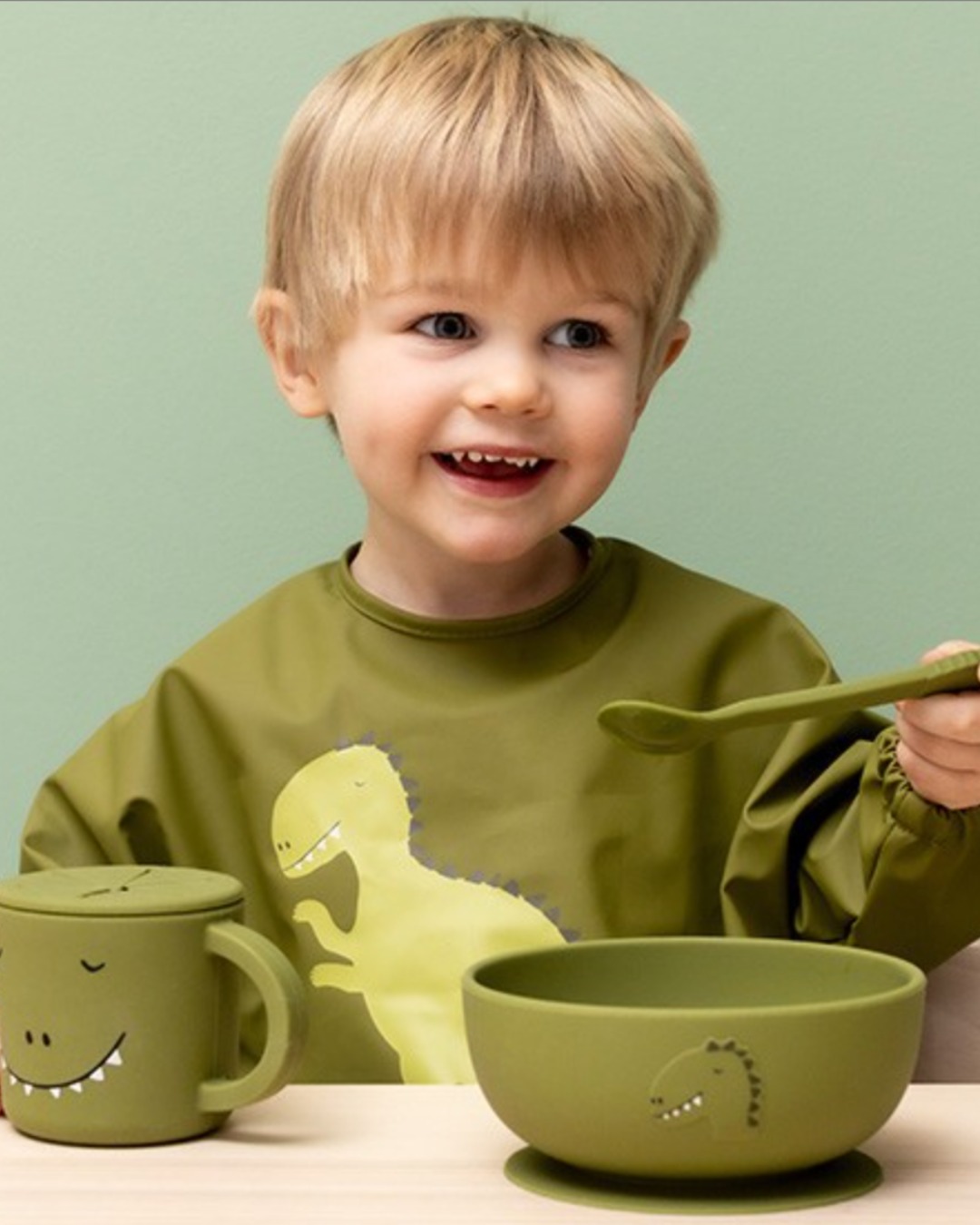 São ideais para alimentar o seu bebé com comida sólida e também perfeitas para as crianças que estão a aprender a comer sozinhas. Possuem uma parte interna em aço inoxidável, que lhes dá firmeza e mantém a forma — por isso, ao contrário do resto da gama em silicone, não podem ser usadas no micro-ondas.