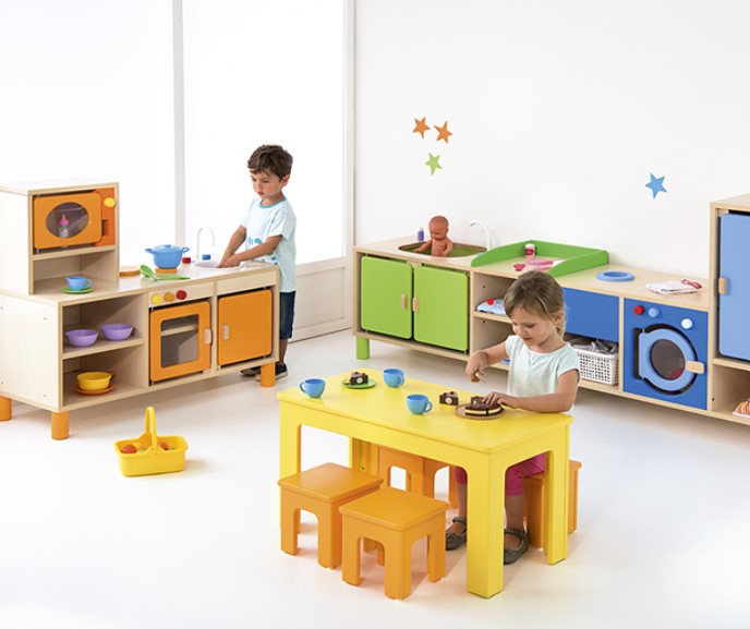 Descrição: Com este combinado de lavandaria, a criança pode imitar os adultos, organizando, lavando e arrumando as roupas das bonecas! Qualidade "especial para coletividades".