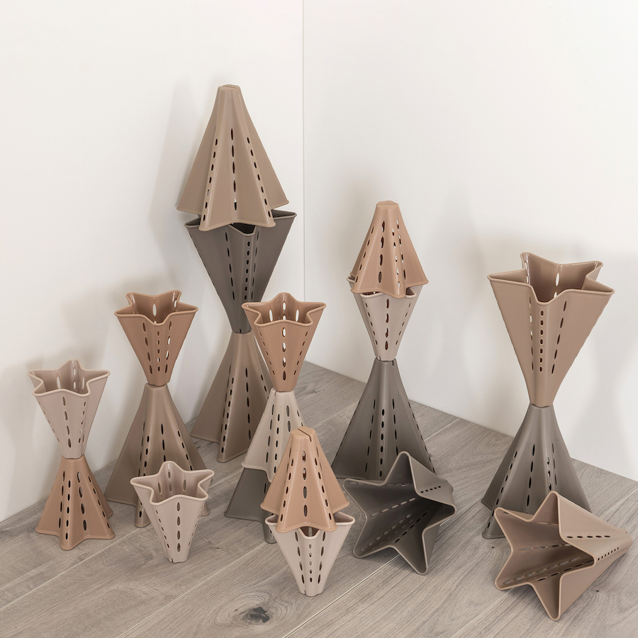 Explore uma variedade de brincadeiras esquemáticas com estes versáteis cones empilháveis, que podem ser usados para diversão imaginativa infinita, aprimorando a construção, brincadeiras sensoriais e exploração criativa.