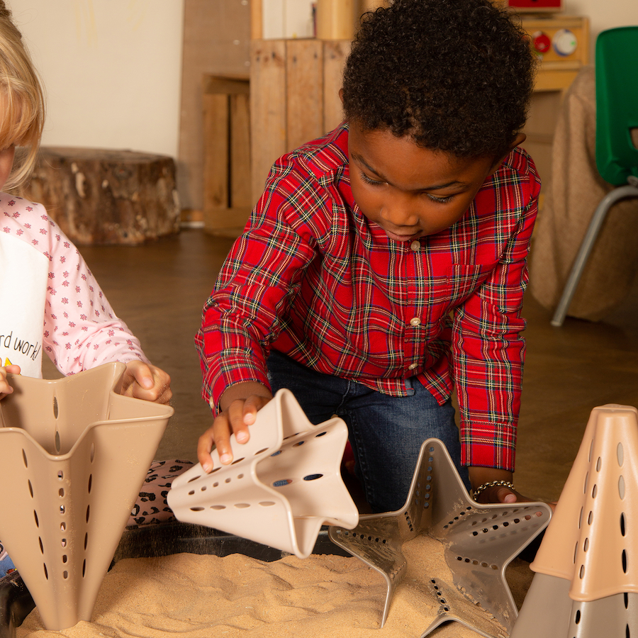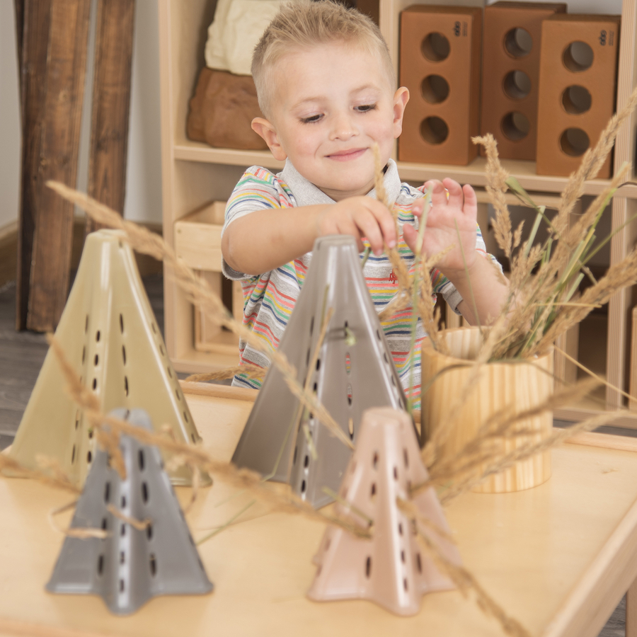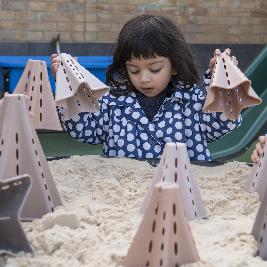 Use estes cones versáteis para criar padrões intrincados, organizar para aprendizagens matemáticas ou desenvolver cenários imaginativos. Eles integram-se bem em ambientes com água, areia e até luz, proporcionando inúmeras opções para educadores facilitarem experiências de aprendizagem envolventes.