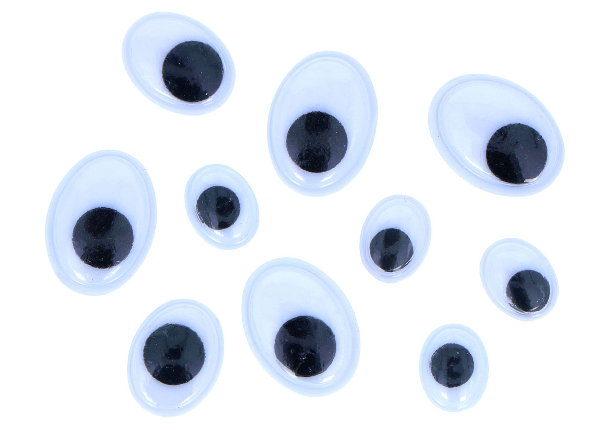 Conjunto de 64 Unidades de Olhos Móveis Autoadesivos Pretos Ovalados em Medidas Variadas
