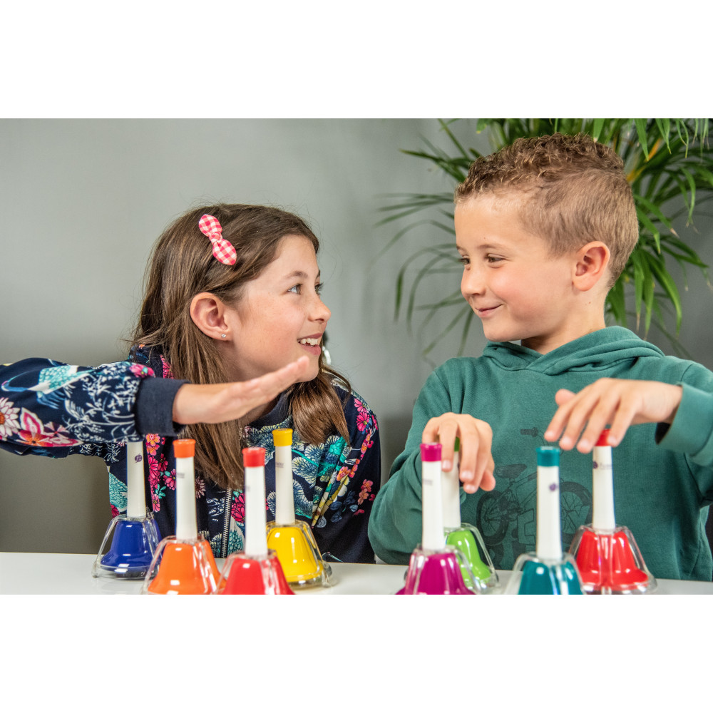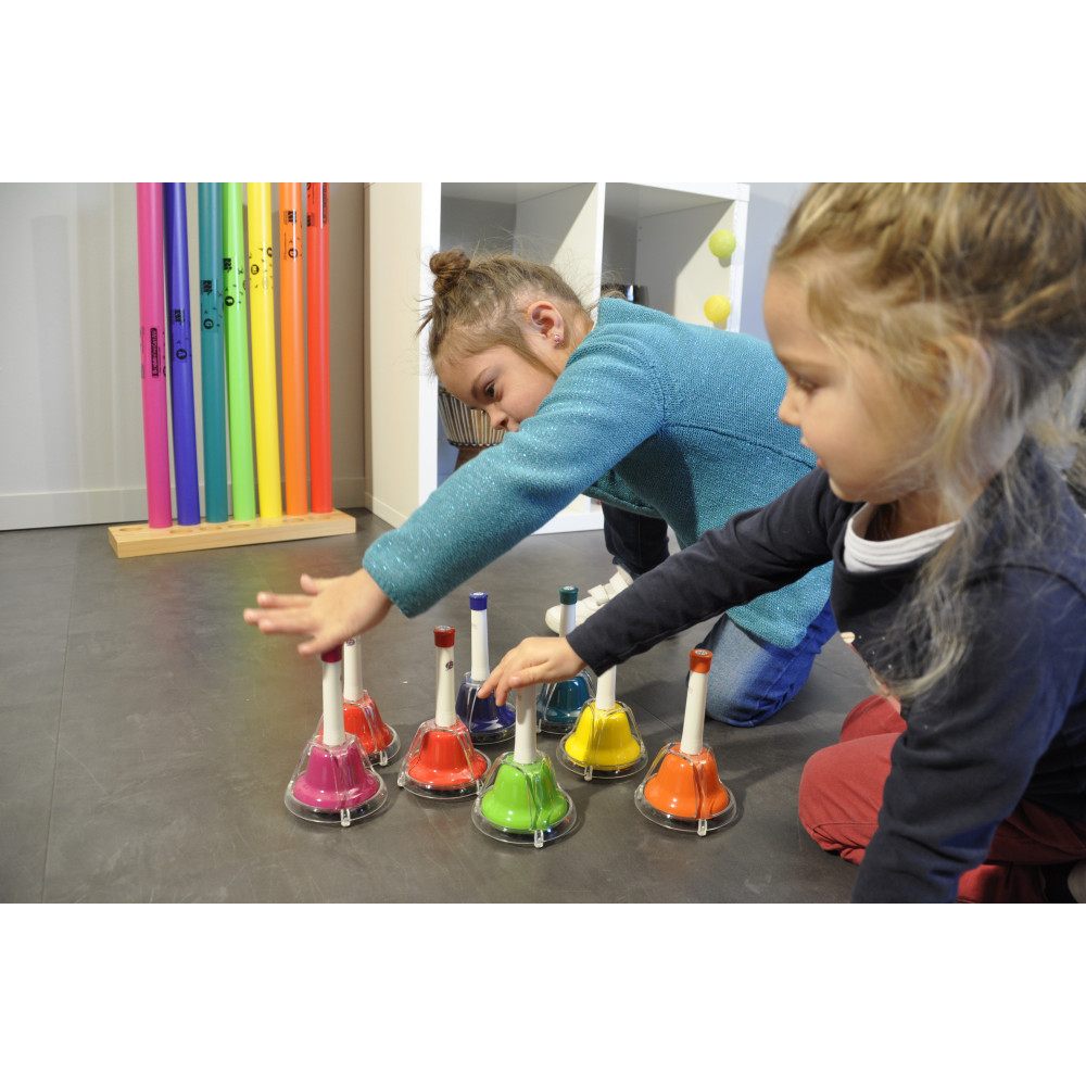 APRENDER, DIVERTIR-SE: Com o conjunto de sinos, aprende-se as notas e tocam-se as primeiras melodias.