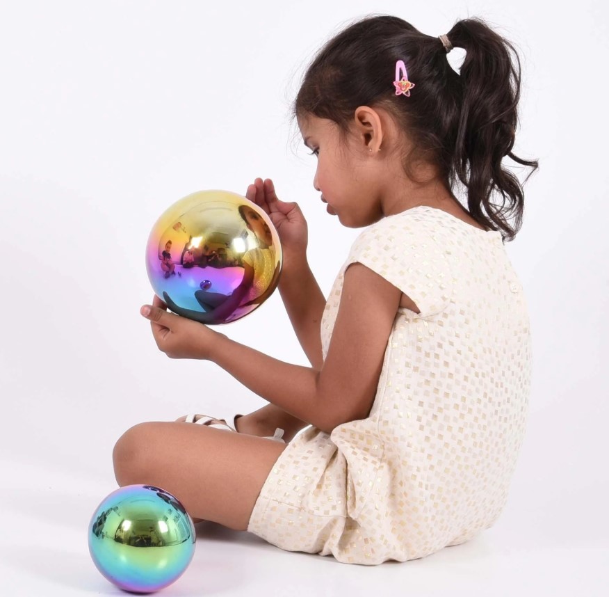 As crianças vão adorar observar o seu reflexo esticado e brincar com as formas curiosas que aparecem na superfície curva. Além de divertidas, as bolas estimulam a criatividade, a imaginação, a linguagem e a aprendizagem através do jogo.