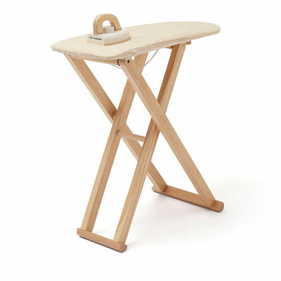 Este conjunto de ferro em madeira natural inclui um ferro sem fio e uma tábua de passar.