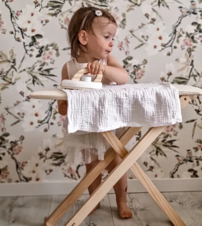 As crianças adoram imitar os adultos, e o ato de passar roupa e brincar de faz-de-conta faz parte do aprendizagem, proporcionando horas de diversão.