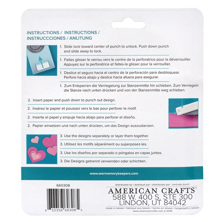 O conjunto de perfuradores We R Makers é composto por três perfuradores da mesma figura em tamanhos diferentes. Isso torna as figuras ideais para sobreposição em um projeto. Além disso, você também pode usar os perfuradores de figuras separadamente.