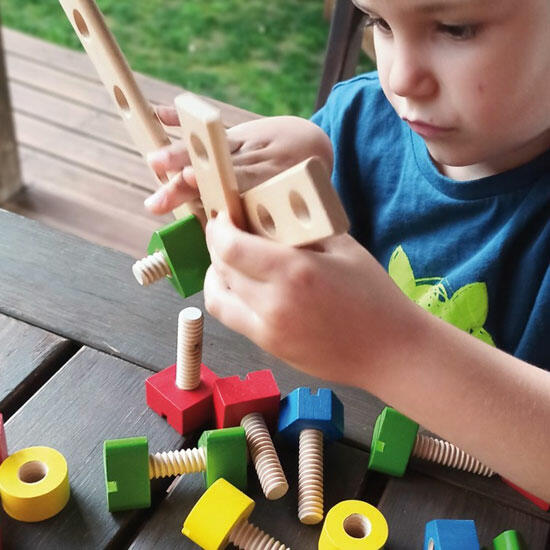 Home Motricidade fina Conjunto de Porcas e Parafusos Conjunto de Porcas e Parafusos 29,99 € Desconto de %. Comprar Contactar Adicionar à wishlist Aprende a enroscar, aparafusar e construir com este magnífico conjunto de 56 peças geométricas. Fabricado em madeira. Medidas do produto: 14,5 x 14,5 x 18 cm Recomendado a partir dos 3 anos. Marca Andreu Toys Partilhar