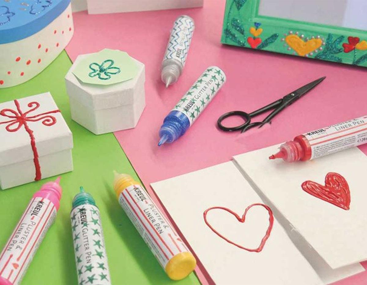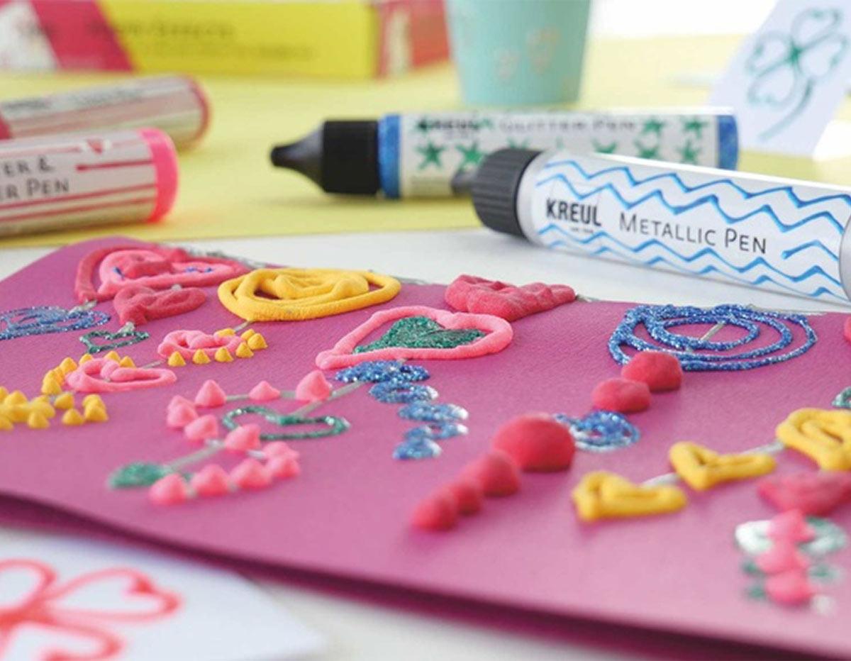 3 canetas KREUL Puffy Paint e Outliner (amarelo-sol, vermelho-rubi, rosa-neon)