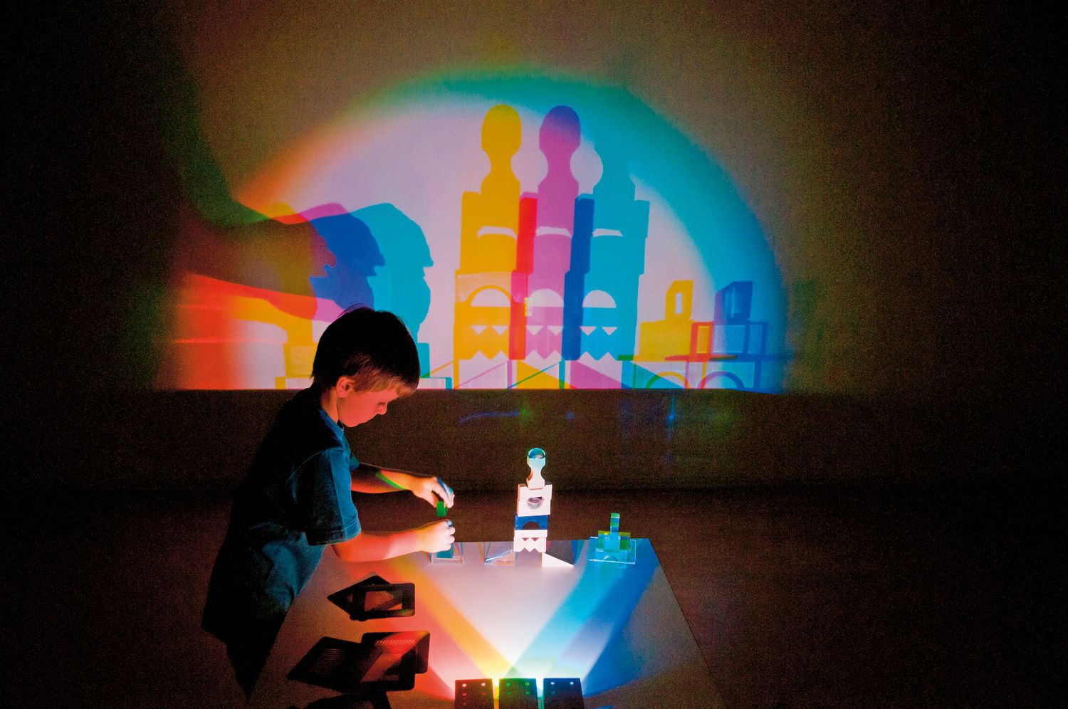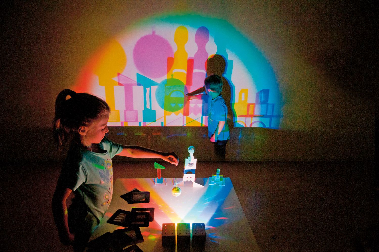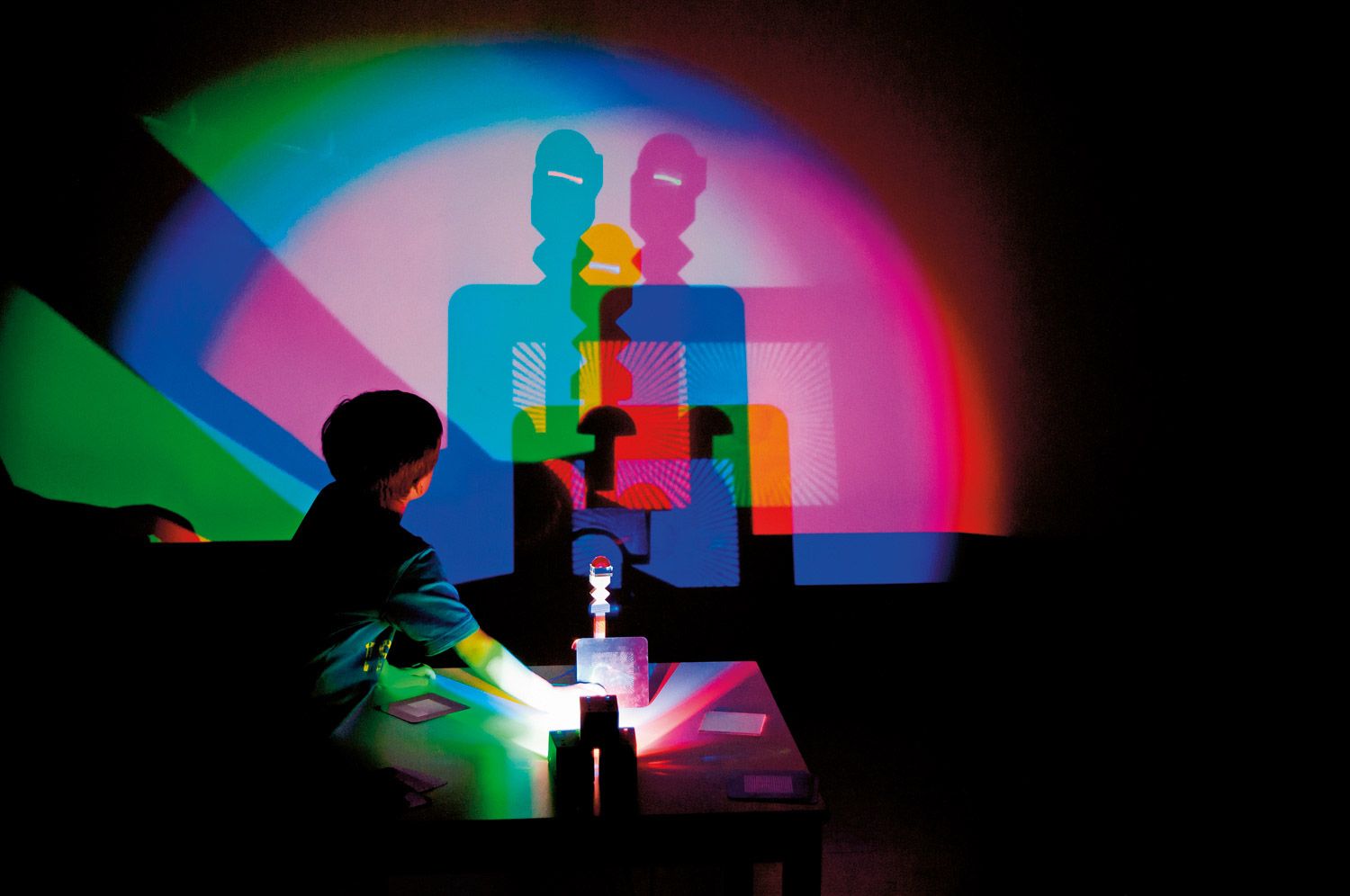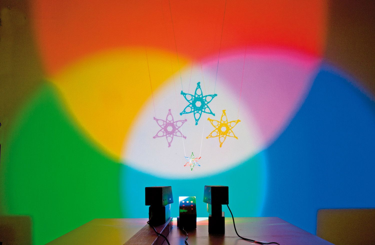 As luzes coloridas transformam qualquer parede num espetáculo de luzes fascinante. Rapidamente, sombras coloridas são criadas e pequenas obras de arte são exibidas, cativando tanto crianças quanto adultos.