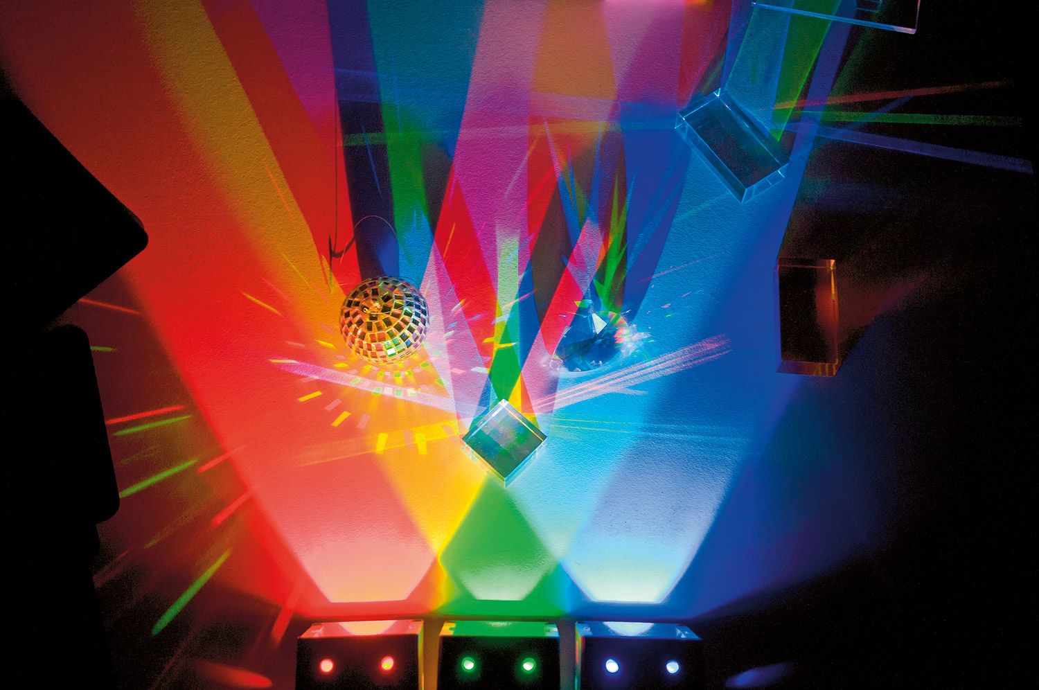 4 projetores de luz (vermelho, azul, verde, branco) – 10,5 x 8,5 x 5,5 cm cada