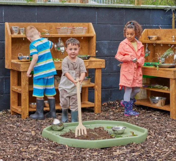 Solta os mini chefs e vê como criam o seu próprio restaurante lamacento, experimentando com a natureza enquanto desenvolvem capacidades motoras finas, trabalho em equipa e brincadeira imaginativa. Um recurso indispensável para qualquer espaço de brincadeira ao ar livre!
