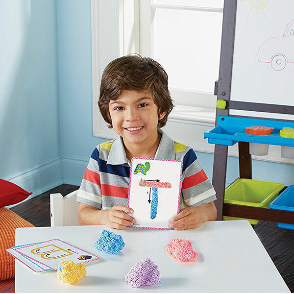 Este conjunto do nosso Playfoam® premiado foi projetado especificamente para incentivar a prática da escrita inicial, à medida que as crianças moldam a espuma nas letras das cartas de atividade.