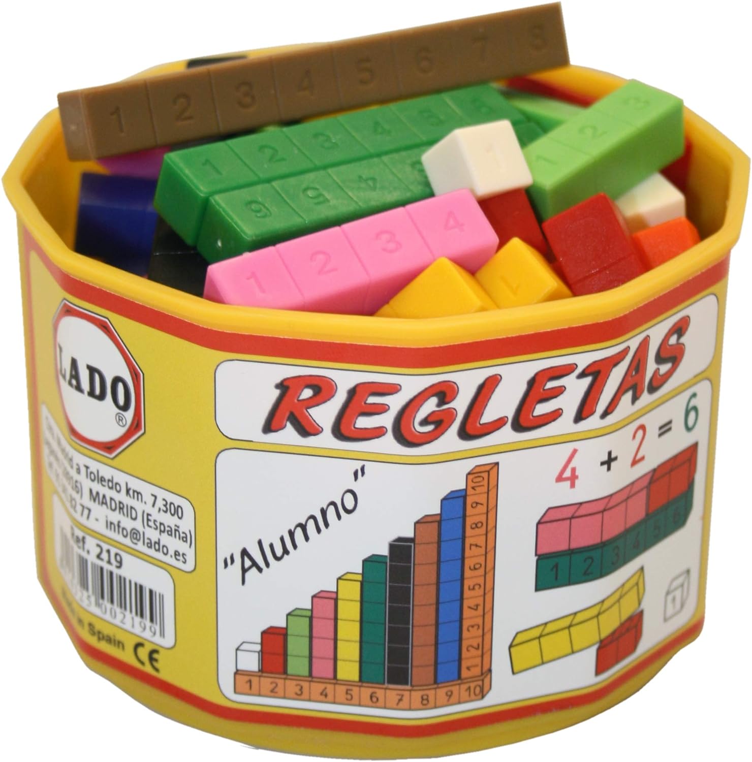 As barras fracionadas LADO são as clássicas barras de Cuisenaire, um método para aprender matemática de forma prática. As barras LADO são fracionadas e têm uma das faces numerada.