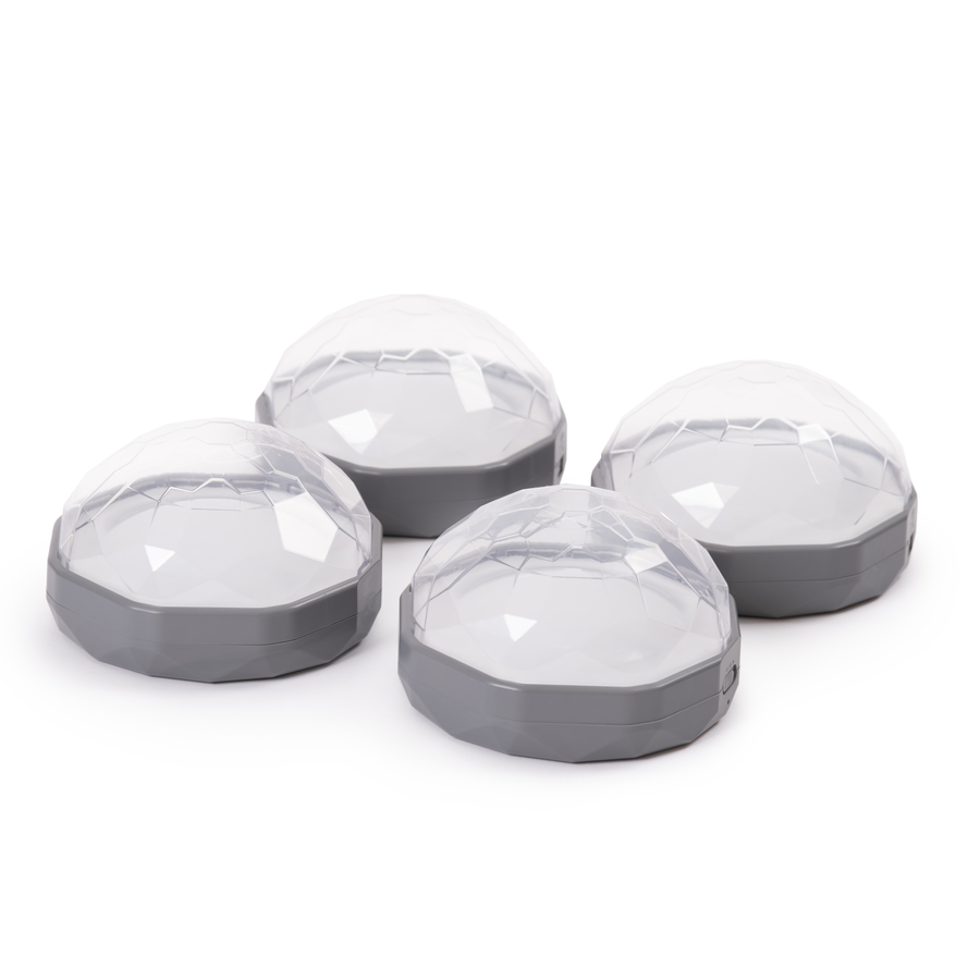 Conjunto de 4 domos transparentes, estilo joia, com funcionalidade de pressionar para acender, mudança de cores e gravação de som.