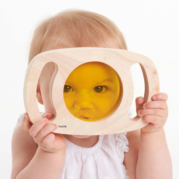 Os Painéis Coloridos Easy Hold da tickit® apresentam estruturas robustas de madeira de borracha com pegas de fácil aderência, envolvendo três painéis translúcidos de cores diferentes que ajudarão a criança a interagir com o mundo ao seu redor de uma forma única.
