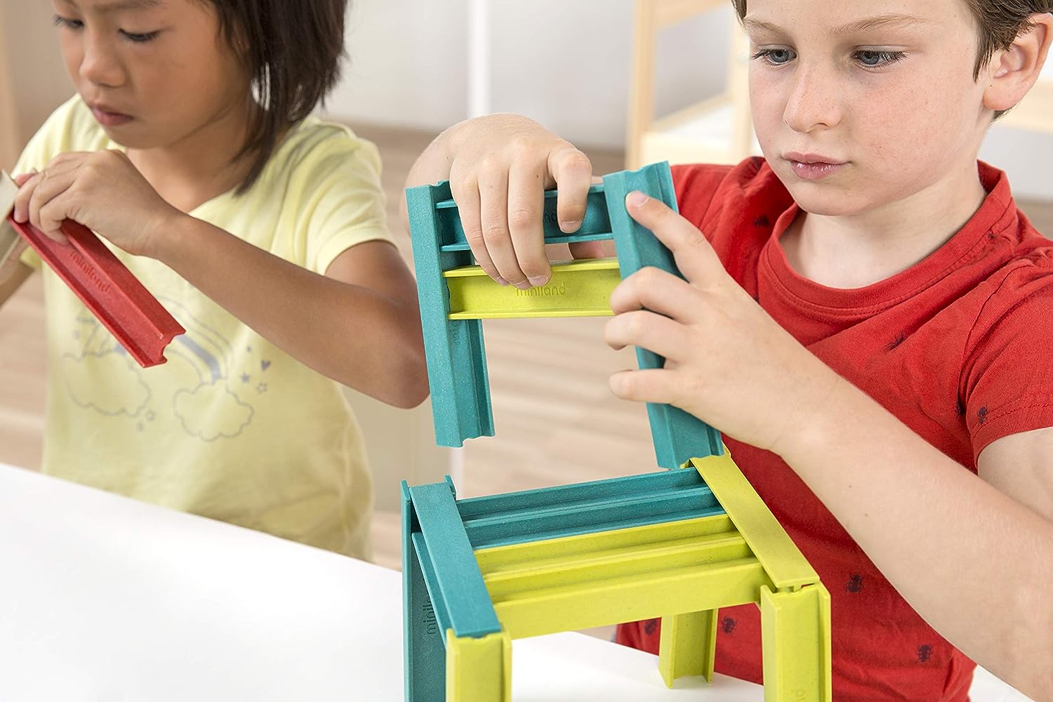 As suas 32 peças são empilháveis ??e interligadas, o que permite adaptar o jogo à evolução de cada criança.