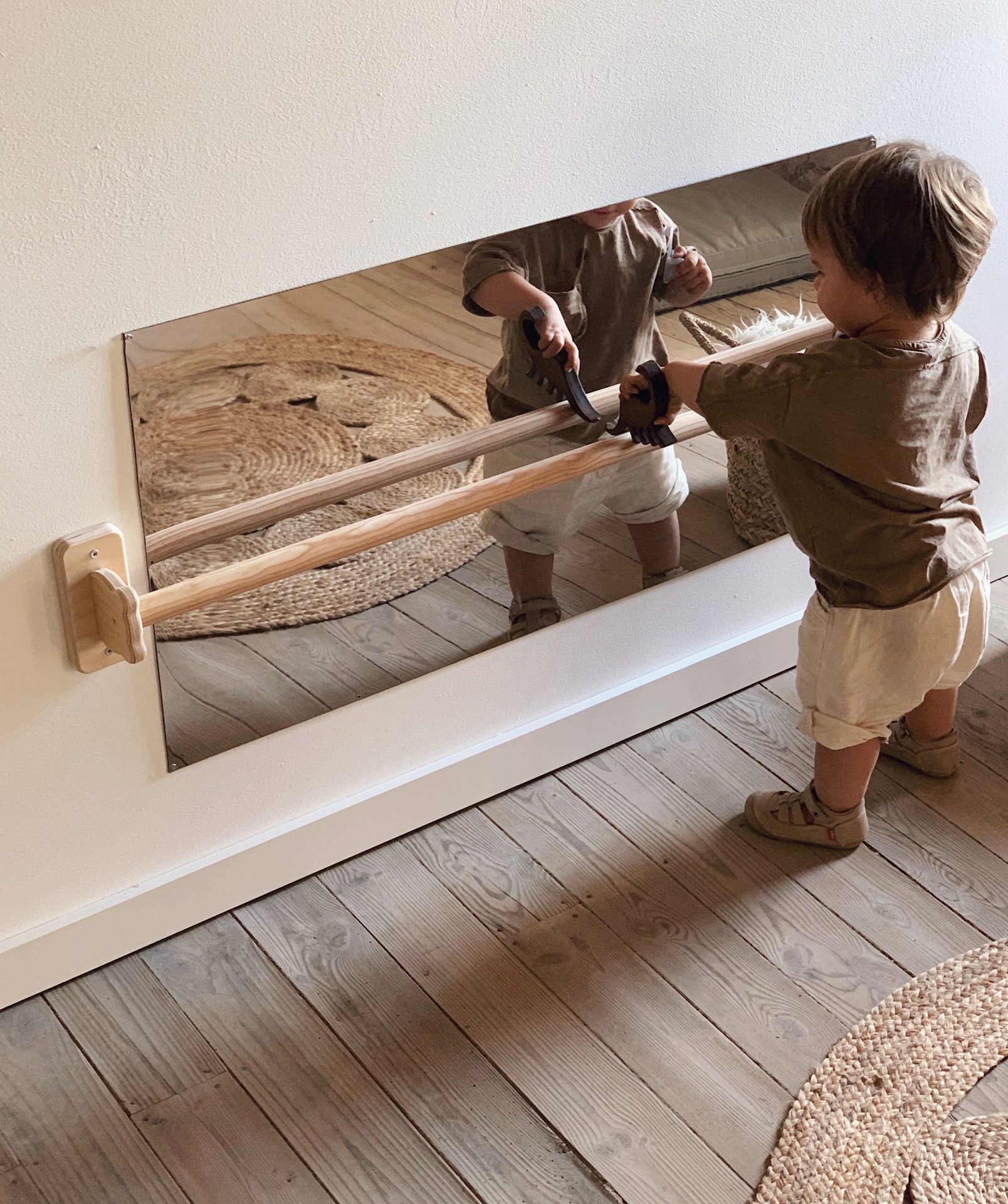 O Espelho com barra é um equipamento versátil, concebido para acompanhar os bebés e crianças pequenas no seu desenvolvimento motor e cognitivo. Este produto combina um espelho e uma barra de equilíbrio, ideal para que os mais pequenos se segurem, pratiquem movimentos de ballet, explorem os seus reflexos e descubram uma infinidade de opções de brincadeira e aprendizagem.