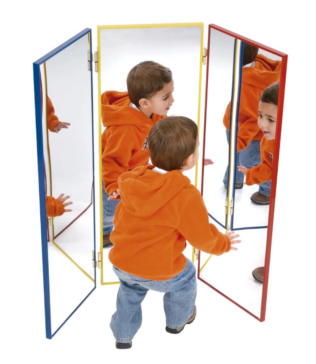 O nosso espelho triplo dobrável é composto por 3 espelhos de alta qualidade unidos lateralmente, permitindo que a criança se veja de frente e de ambos os lados ao mesmo tempo. É um recurso que os mais pequenos vão adorar!