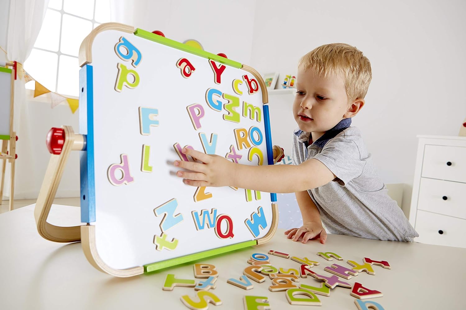 Home Cavaletes, espelhos, quadros e companhia Estúdio de desenho portátil Estúdio de desenho portátil 51,69 € Desconto de %. Comprar Contactar Adicionar à wishlist Este conjunto de arte completo é composto por um painel branco magnético e um quadro de giz. Este painel é portátil, o que o torna fácil de mover e colocar em qualquer lugar. Também é simples de transportar. Características: Quadro de dupla face: um lado para desenhar com giz e o outro com marcador. Materiais principais: madeira, tinta à base de água, ABS, PA, ímã. Dimensões: 116,1 cm de altura x 7,6 cm de largura x 122,9 cm de comprimento. Idade recomendada: A partir de 3 anos. Marca Hape Características Partilhar