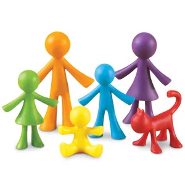 Estas peças podem ser usadas em diferentes atividades para desenvolver habilidades de contagem, classificação, padrões, habilidades matemáticas básicas e habilidades sociais. Os contadores permitem que as crianças explorem conceitos matemáticos e desenvolvam a compreensão da sua própria família e das relações entre os membros da família.