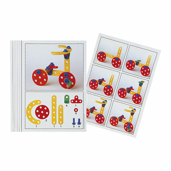 As fichas Technico Junior® (vendidas separadamente) oferecem 12 modelos para aprimorar a capacidade de elaborar estratégias de montagem.