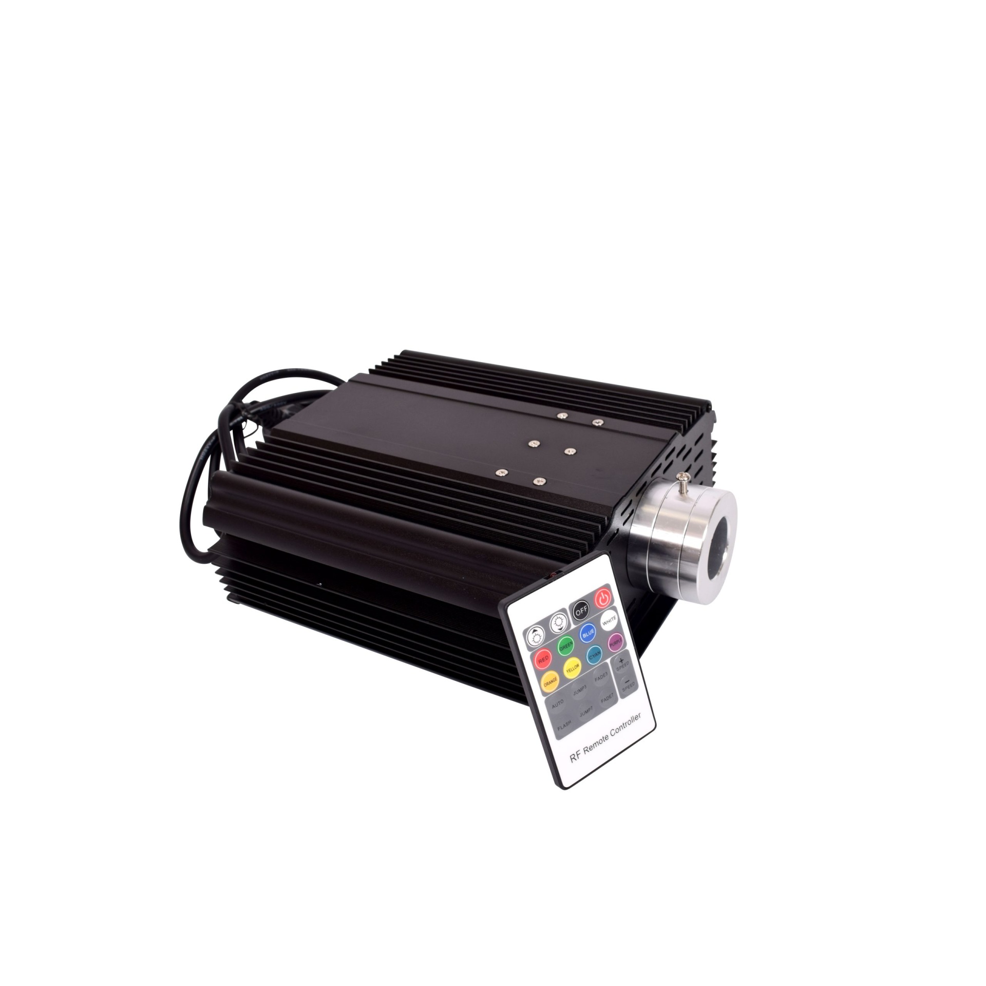 Com tamanho de 28,5 x 26,5 x 14,5 cm, esta fonte de luz é ideal para alimentar e fornecer iluminação a sistemas de fibra ótica. Sua potência de 45W permite uma iluminação brilhante e vibrante através das fibras, criando efeitos visualmente cativantes.