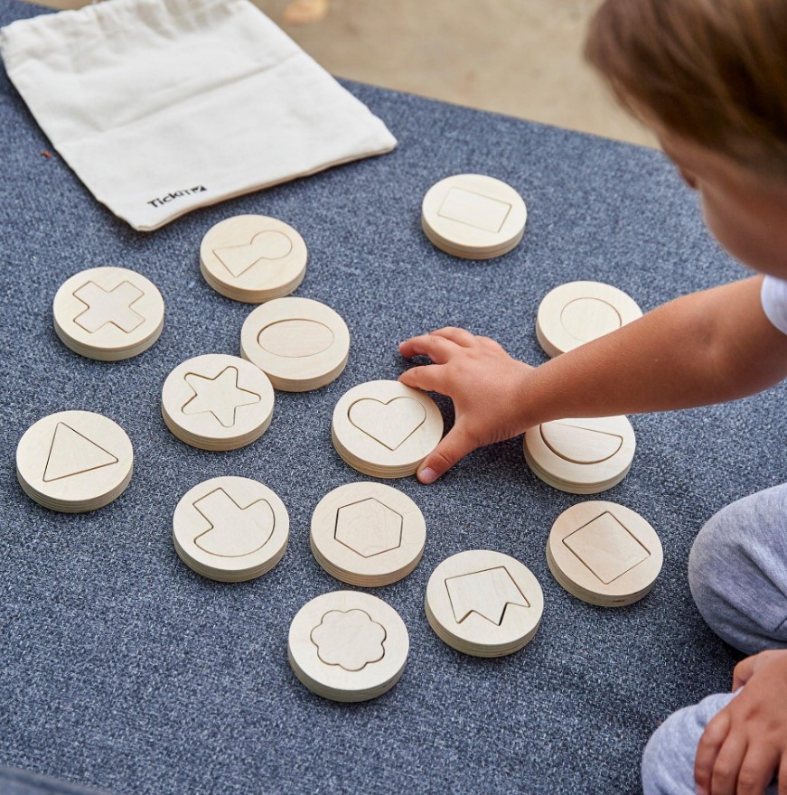 As Formas de Madeira Dentro e Fora da TickiT proporcionam uma experiência divertida e estimulante para as crianças explorarem a classificação de formas e a resolução de puzzles.